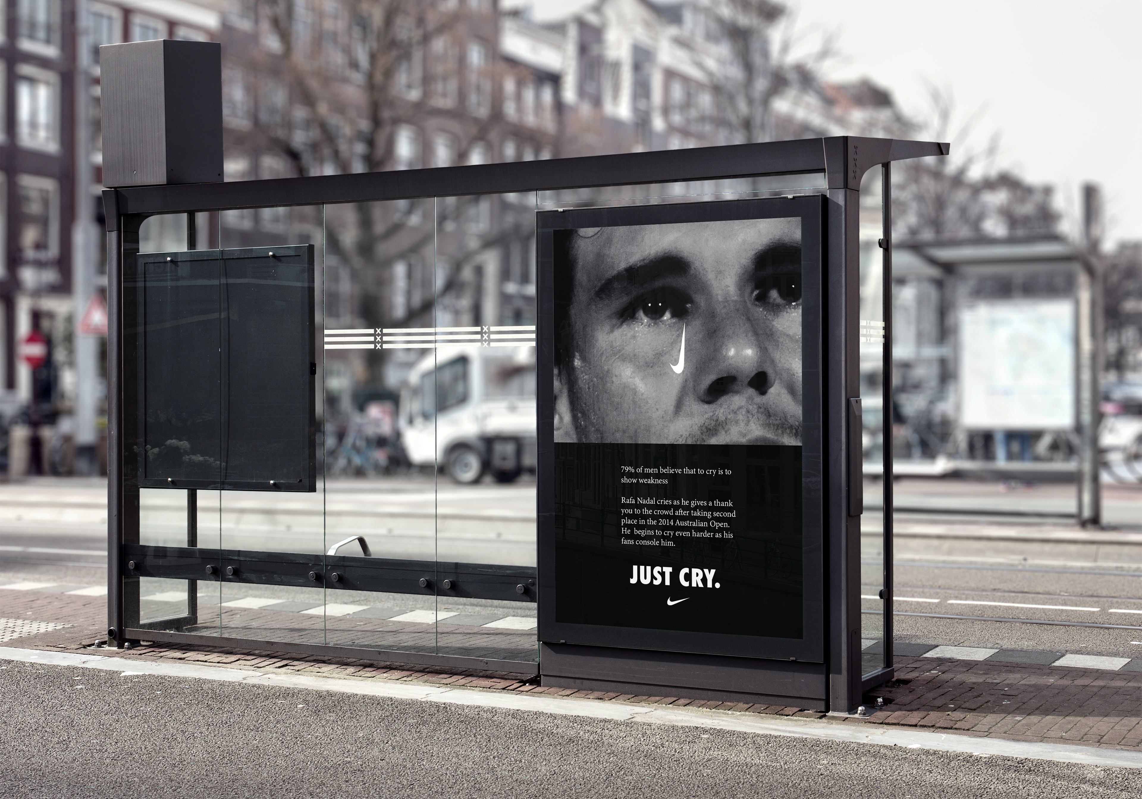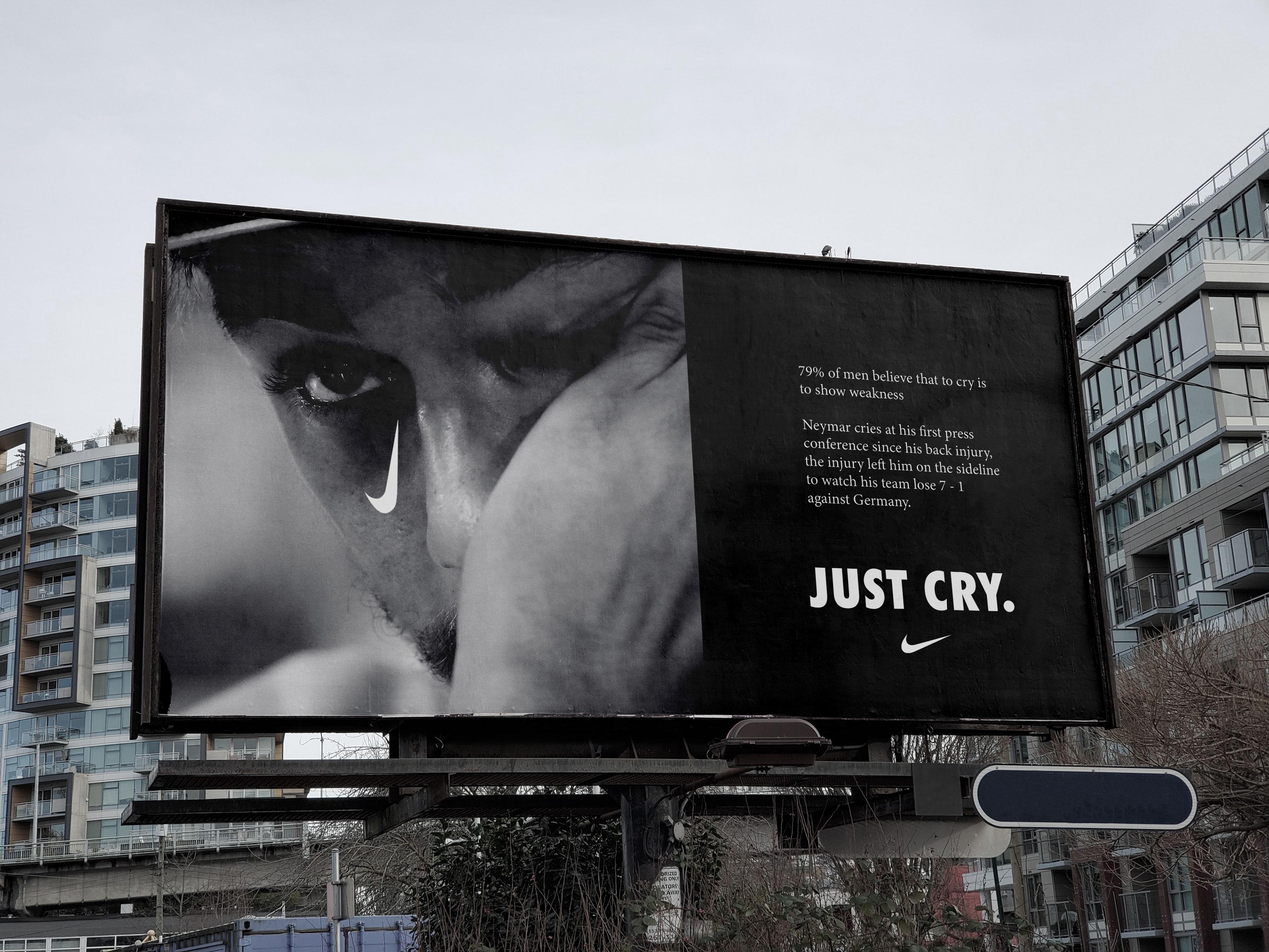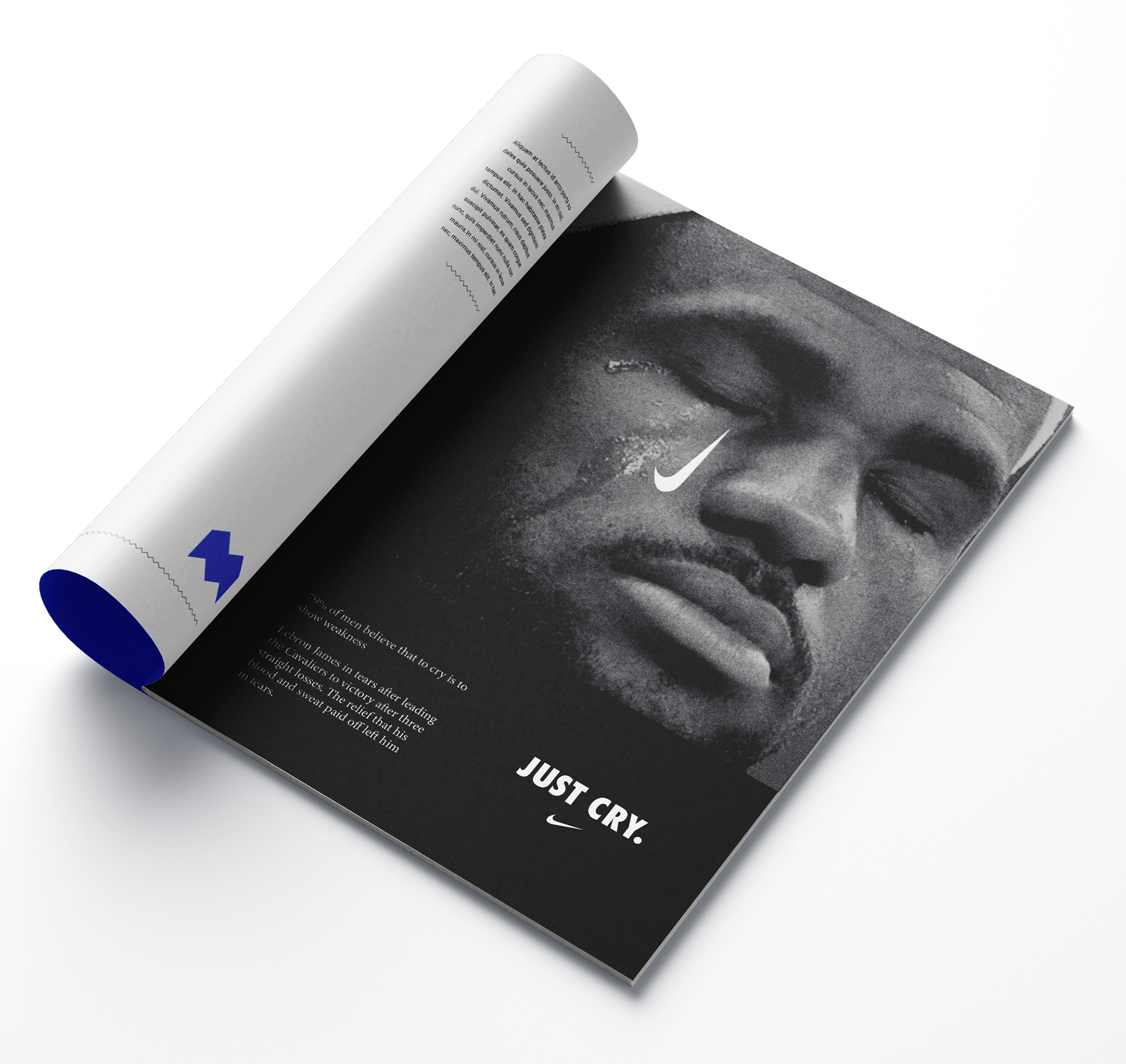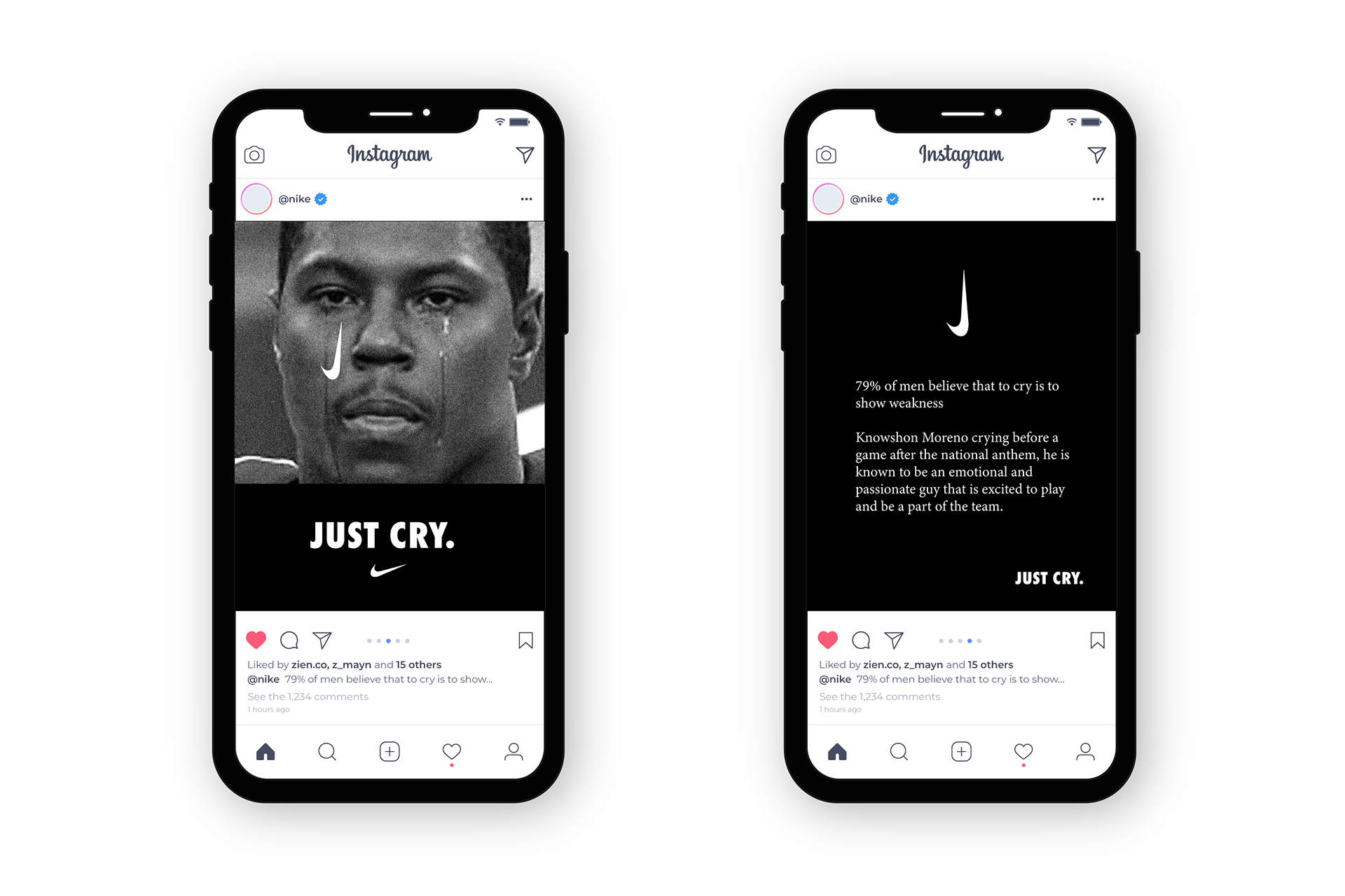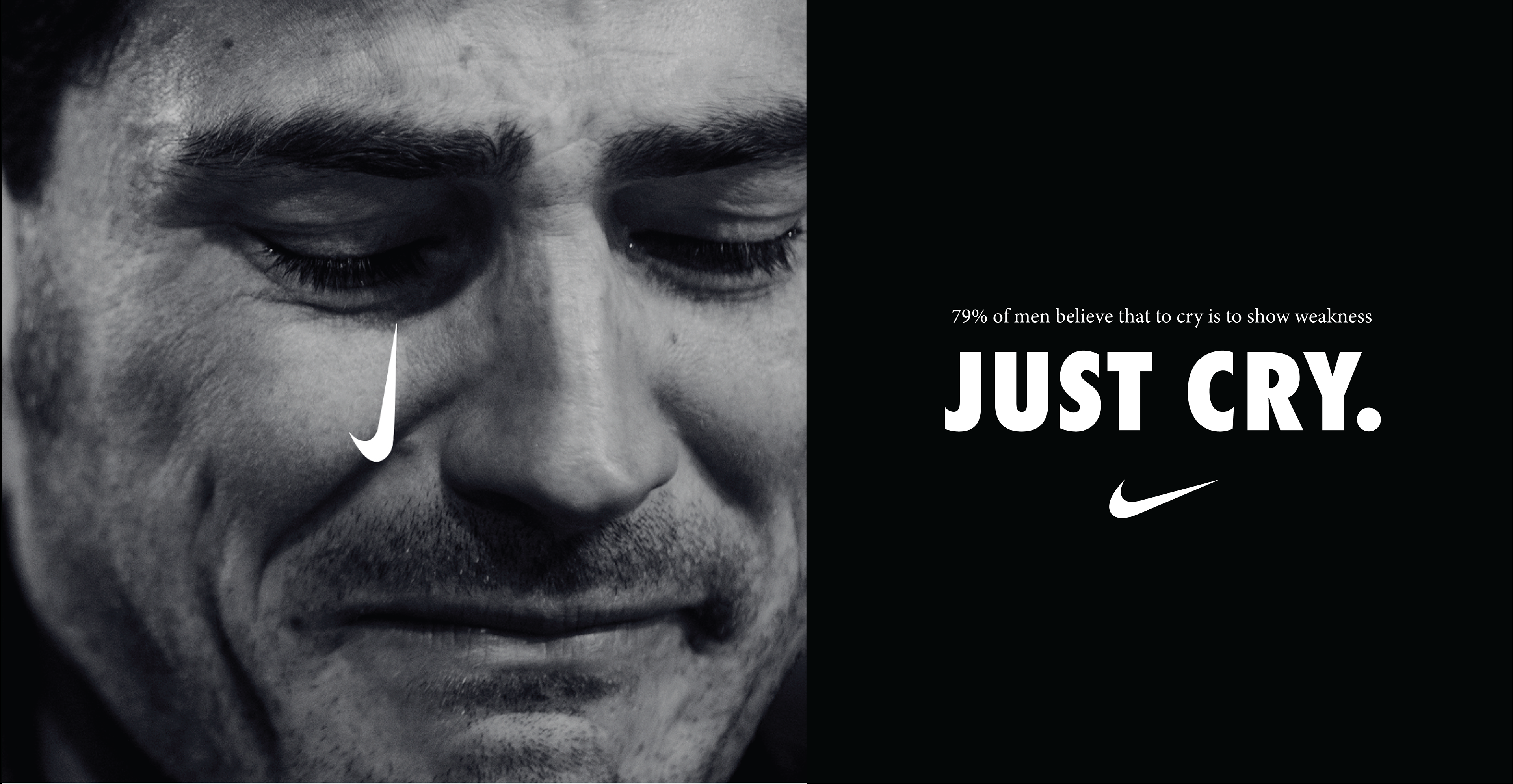 Based on this insight we wanted to use the opportunity to address masculinity in sports, seeing as it's ok for our favorite male athletes to cry, but weakness when other men do it. We wanted to send the message that it's ok to cry, by rotating the Nike logo and turning it into a teardrop.